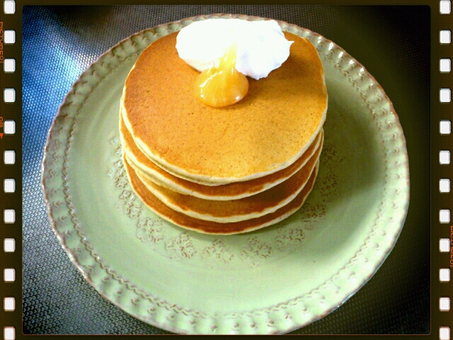 最近スコーンやキッシュばっかり作ってたけど、ランチに久しぶりにパンケーキ焼いたです。