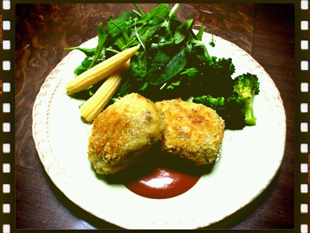 みんなが牡蠣鍋食べてる中、私はコロッケ。