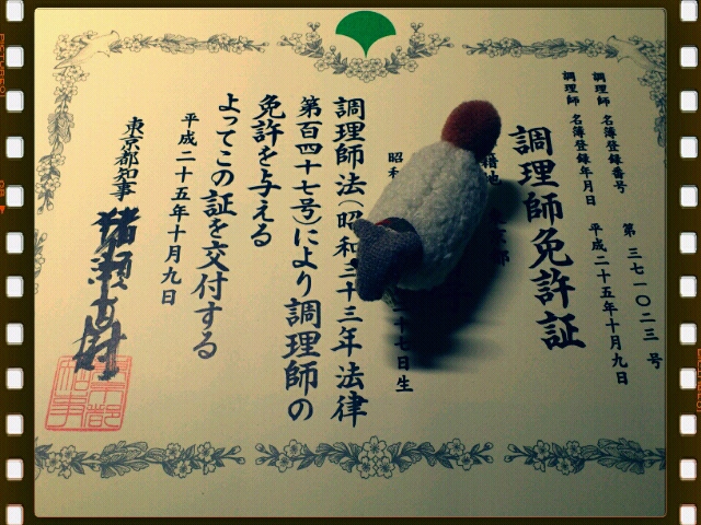 さ。後は書類届くの待って都知事に調理師名簿登録してもらえば晴れて「調理師」を名乗れますですよ。