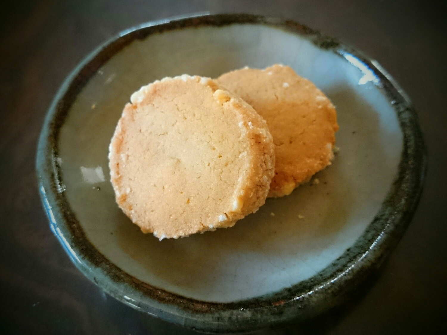 サクほろクッキーとか。周りには砂糖じゃなくてもち米を乾燥させたリスフレを砕いてまぶしました。