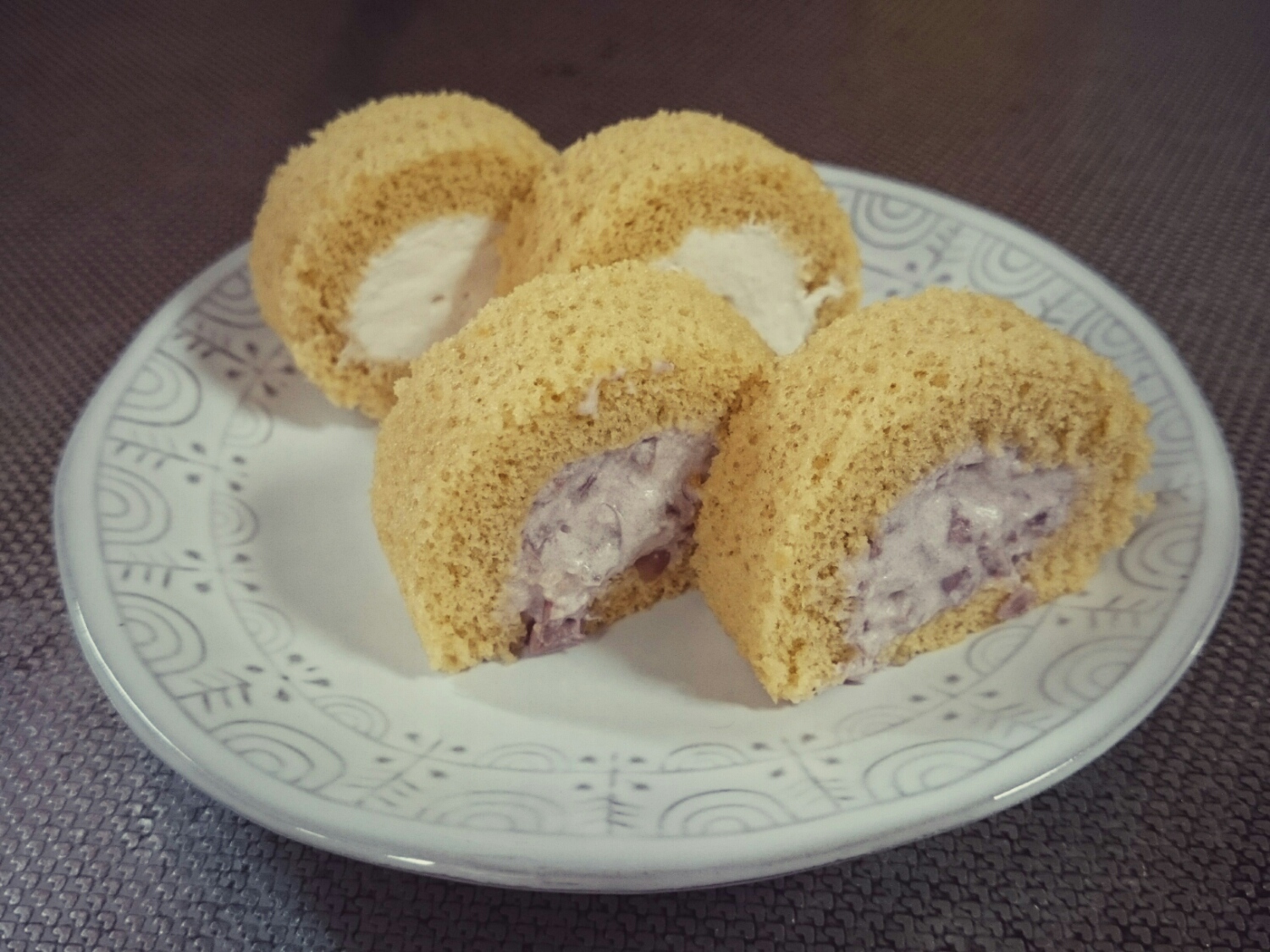 プチロールケーキ二種類(あんこと生クリーム)とか