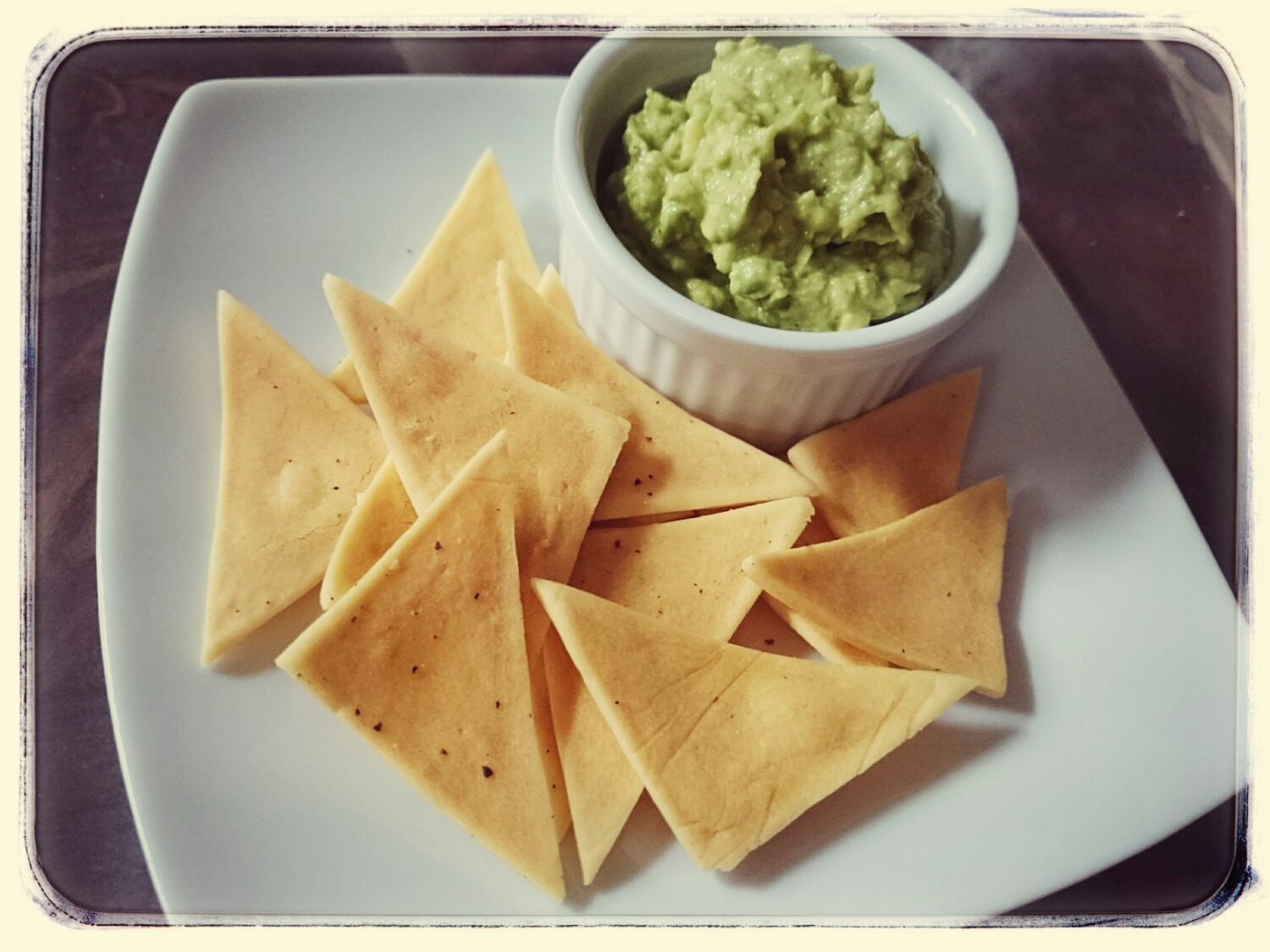 アボカドでワカモレ作ったから、コーンフラワーと米粉でコーンチップスとか、
