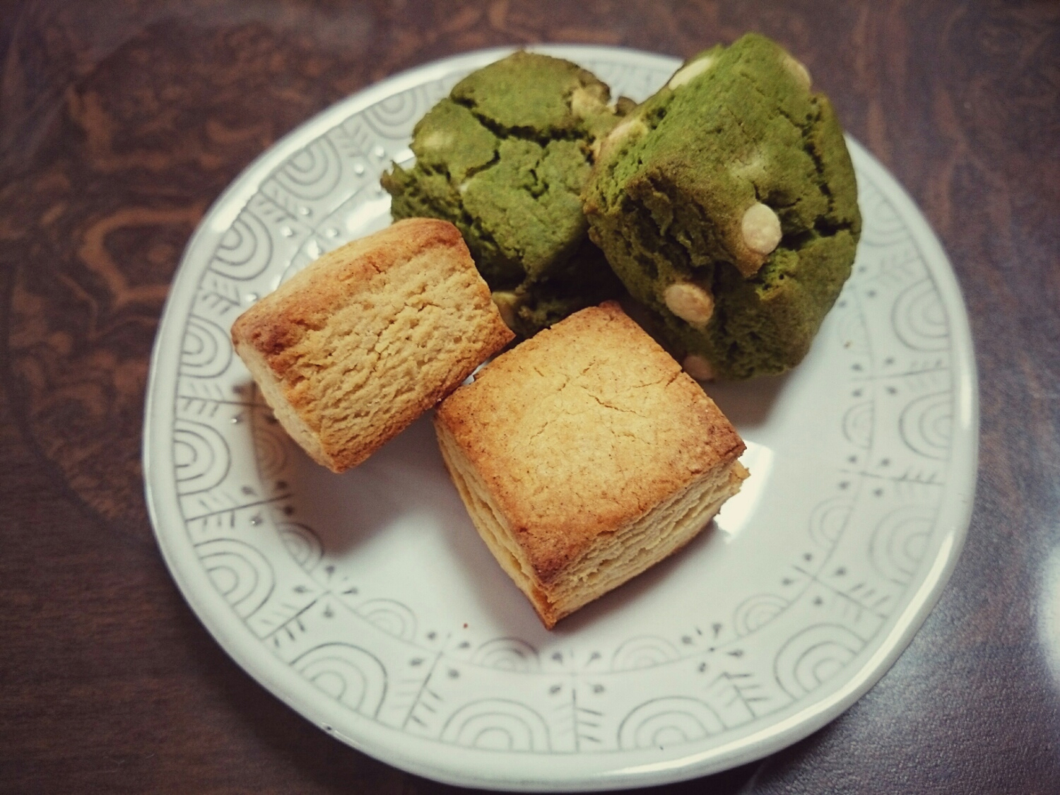 大豆粉入れたスコーンと抹茶とホワイトチョコ入れたスコーン。