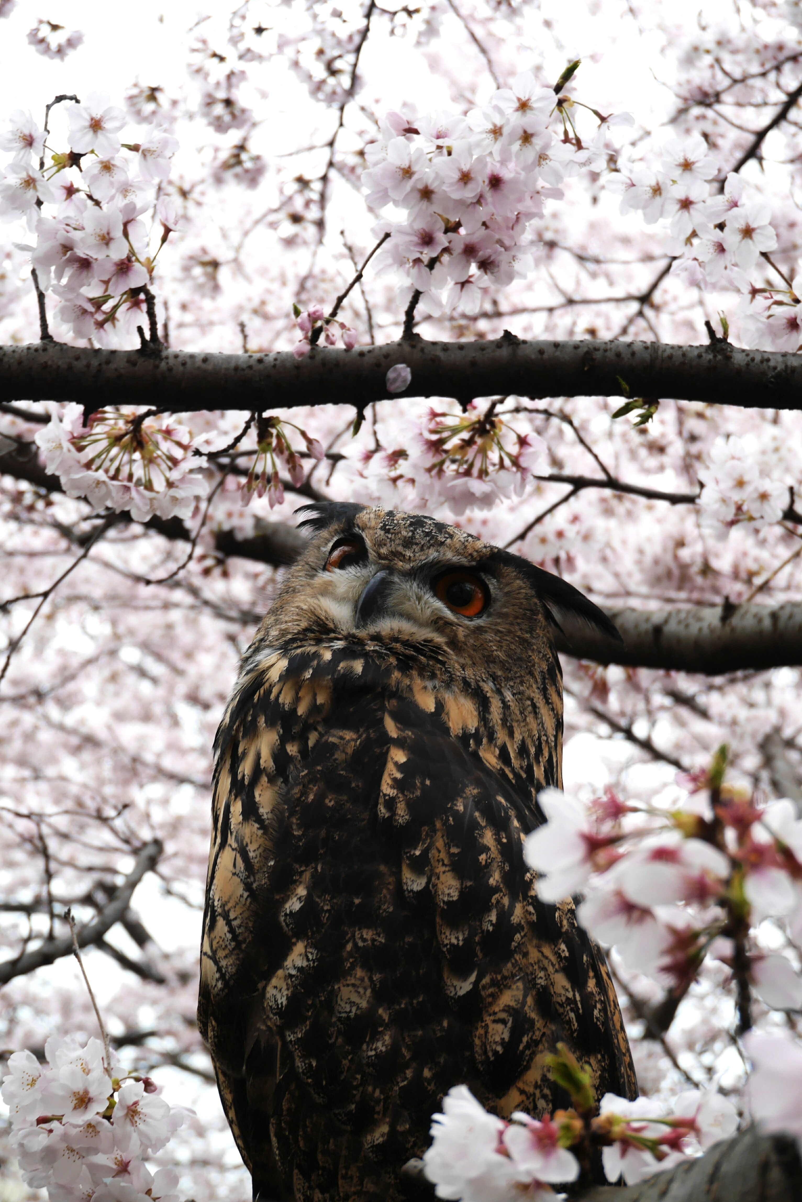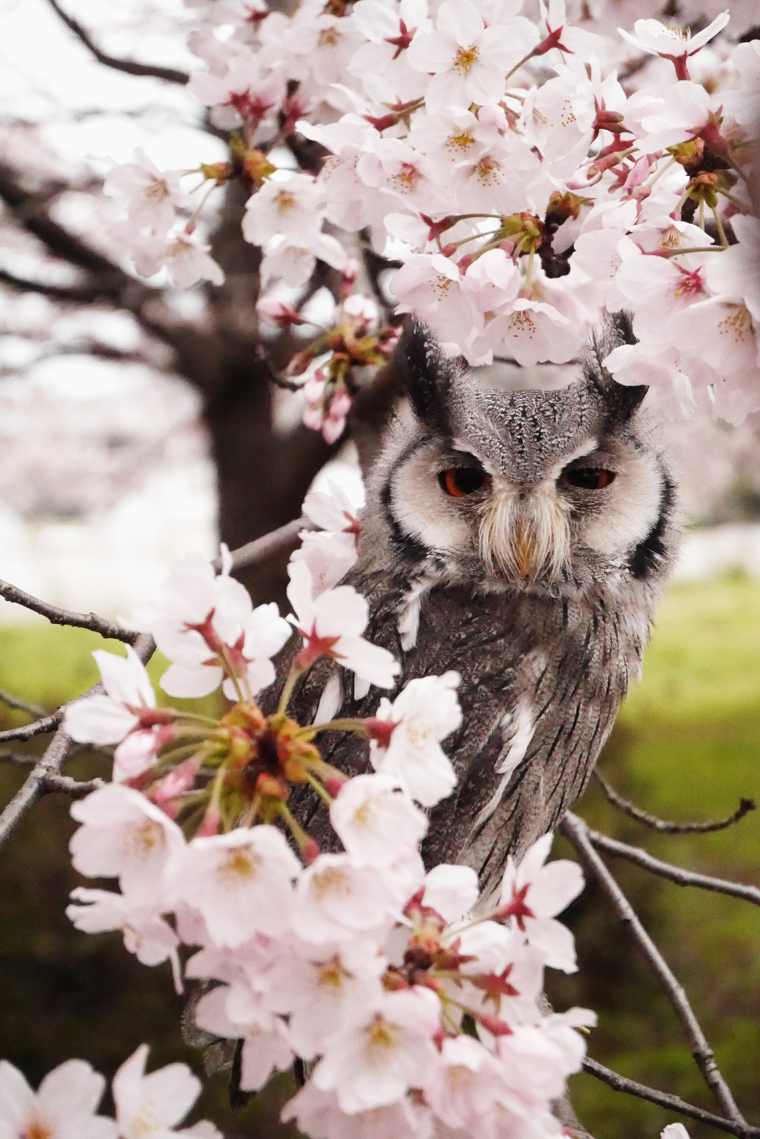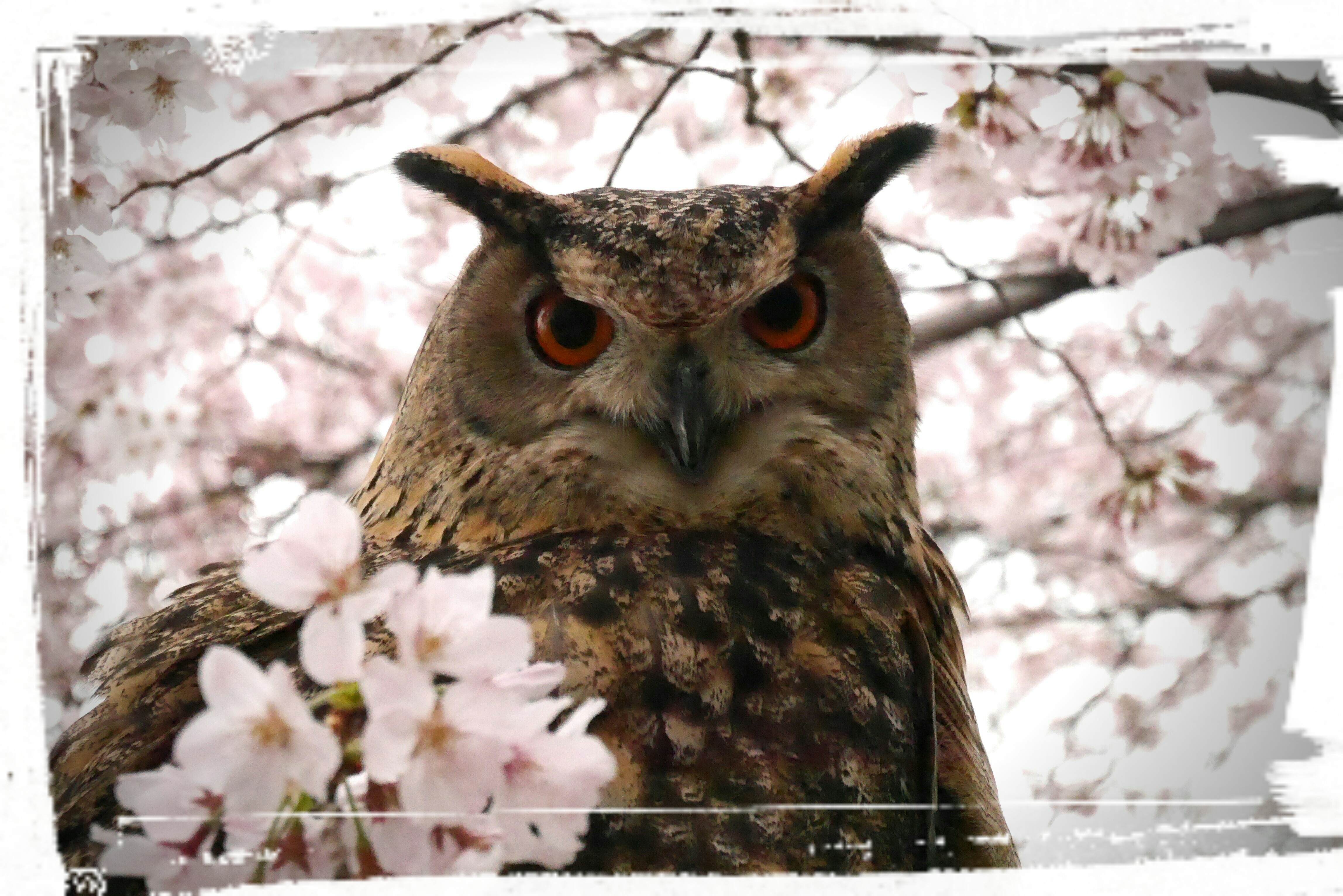 最大の醍醐味はやはり、ふくろうさんと桜のコンビネーション!