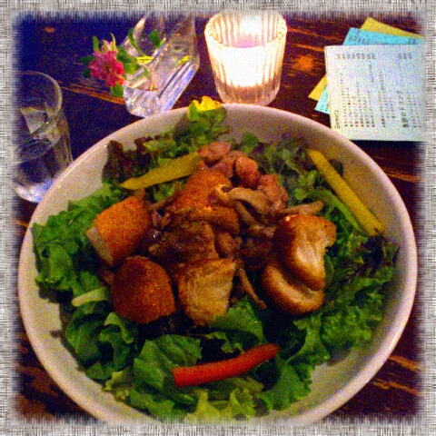 キノコとチキンのホットバゲットサラダ。