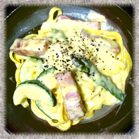 夕御飯は突然食べたくなったカルボナーラを作りました。
