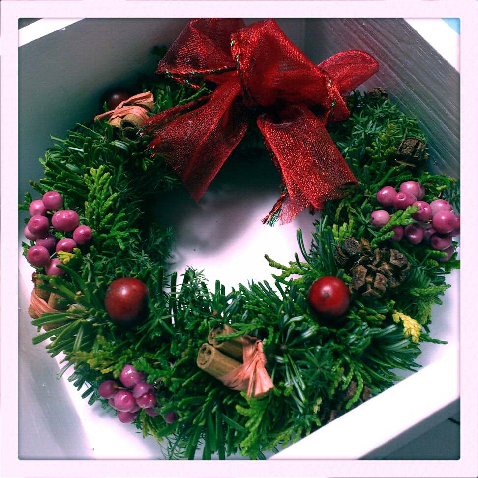 母親が友人からもらった手作りリース。