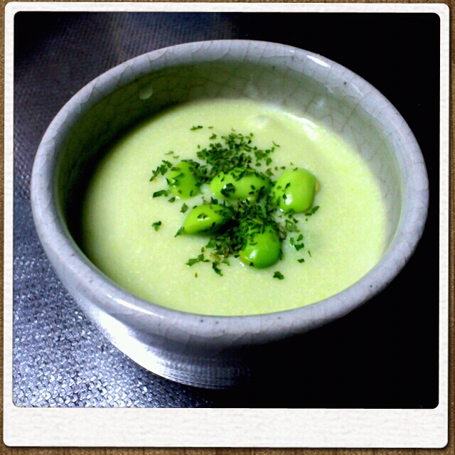 そして夕飯に今が旬の枝豆のスープ作ってみた。