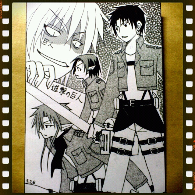 アニメ参考に描いたのですが、立体機動装置は適当です。
