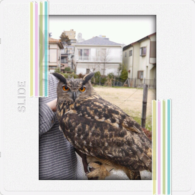 ガラスの向こうのふくろうたちを眺めつつ、紅茶を飲み終えるとふれあいの時間。