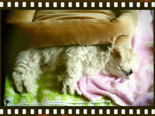 ワクチンあと1回終わるまでシャンプーできないから、毛がのびてモサモサです。