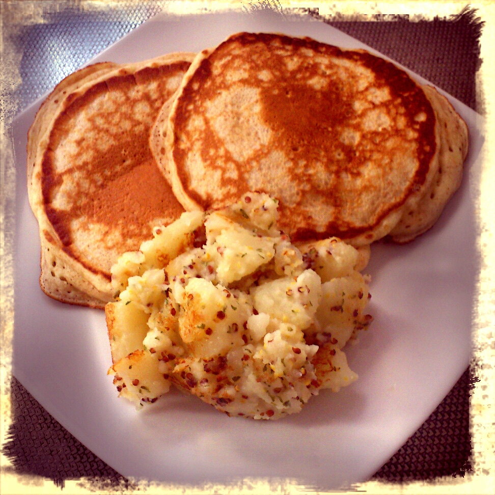 全粒粉のパンケーキ(以前と違うレシピと焼き方)に、焼きマッシュポテト。