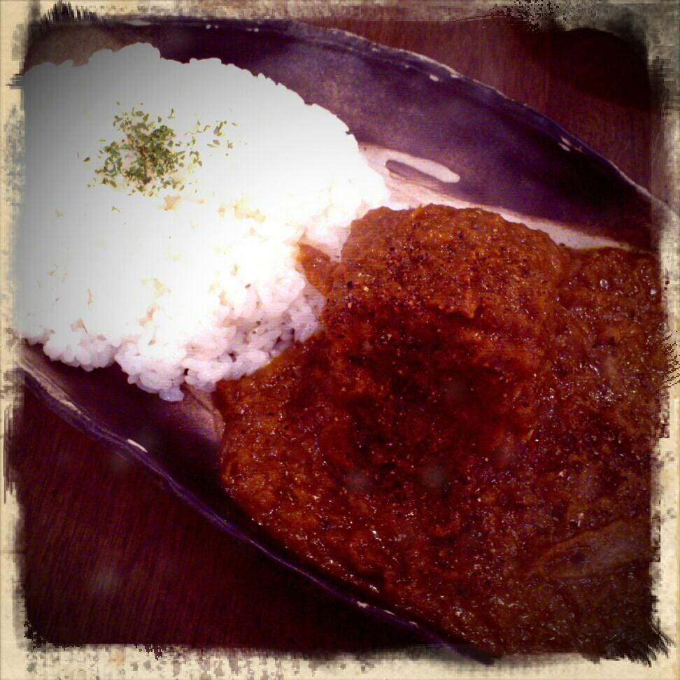大きな豚の角煮のカレー。辛いけど美味しかったー。