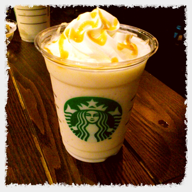 スタバ原宿店限定メニューのバナナキャラメル&クリームフラペチーノ。