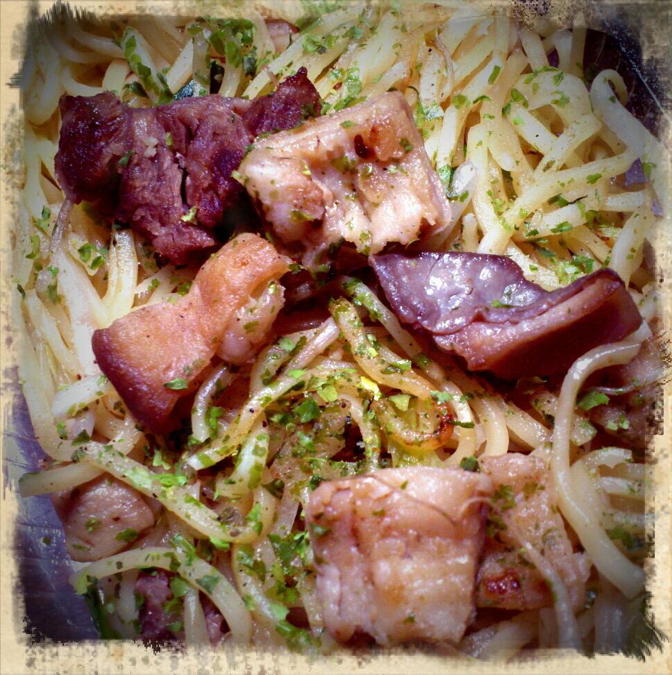 そしてこちらは炭火焼肉ゆうじの「ホルモン焼きそば」680円。